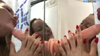 In this sensational video titled Watery Dildo Fling Under Shower, the screen is filled with an incredible portrayal of sexual passion as a couple engages in a highly erotic tryst under the warm embrace of the shower.The man and woman appear to be entirely enamored by one another, their bodies tangled together in an unyielding yet tender display of desire.The video opens with an intense kiss between the two lovers that quickly escalates into an arousing frenzy as their hands explore each other's flesh with urgency and lust.The woman teasingly takes her partner's erect member in hand, giving it a slow and sensual stroke while pretending to perform oral on an inserted dildo, the water from the shower serving to muffle any real moans or groans of pleasure.With the spray from the shower hitting their bodies, their sexual energy increases tenfold they take turns in a fervent dance of passion and sensuality that culminates with her pretending to deepthroat the dildo while he pushes himself towards a climax.As she holds the dildo between her lips, water from the shower cascading over her, she expertly works it in a motion reminiscent of an actual blowjob, the tension and desire building with each stroke.The man takes her into his arms, kissing passionately as their bodies meld together under the gushing waterfall, her legs wrapped around him.In this moment, it's clear that both participants are lost in a world of ecstasy and sensual delight as they exchange explicit oral acts, the woman simulating the sucking and deepthroating of a penis while using an inserted dildo, while the man works her over with his skilled tongue, fully immersed in their watery erotic adventure.The passion between them reaches its zenith as the man pulls her into a passionate embrace.With the spray from the shower as their only accompaniment, he unleashes an impressive load all over her drenched body.Their lovemaking in this steamy scene is a testament to the power of human sexuality, made all the more thrilling by their incorporation of a water-drenching fantasy.In summary, Watery Dildo Fling Under Shower delivers an erotic spectacle that combines sensual acts, playful imagination, and steamy under-the-shower scenarios in this captivating video that keeps viewers at the edge of their seats with each climactic moment.The couple's ability to embrace such a fantastical watery world, interlacing eroticism with their explicit sexual dance, has ensured that the viewer is left breathless and yearning for more as they immerse themselves in the tantalizing waters of desire.